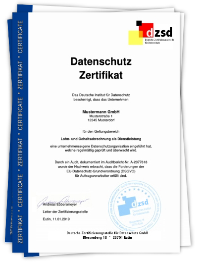 Deutsche Zertifizierungsstelle für Datenschutz GmbH     Blessenberg 18     23701 Eutin   Impressum        Datenschutzerklärung