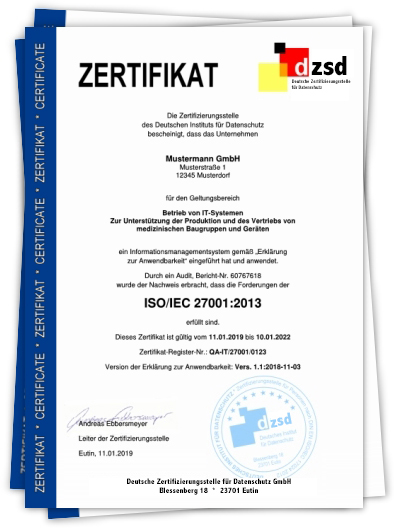 Die ISO/IEC 27701 for privacy information management ist eine Erweiterung der ISO 27001 und ist der Nachweis der Umsetzung datenschutzrechtlicher Vorschriften. Damit ist Datenschutz zertifizierbar.